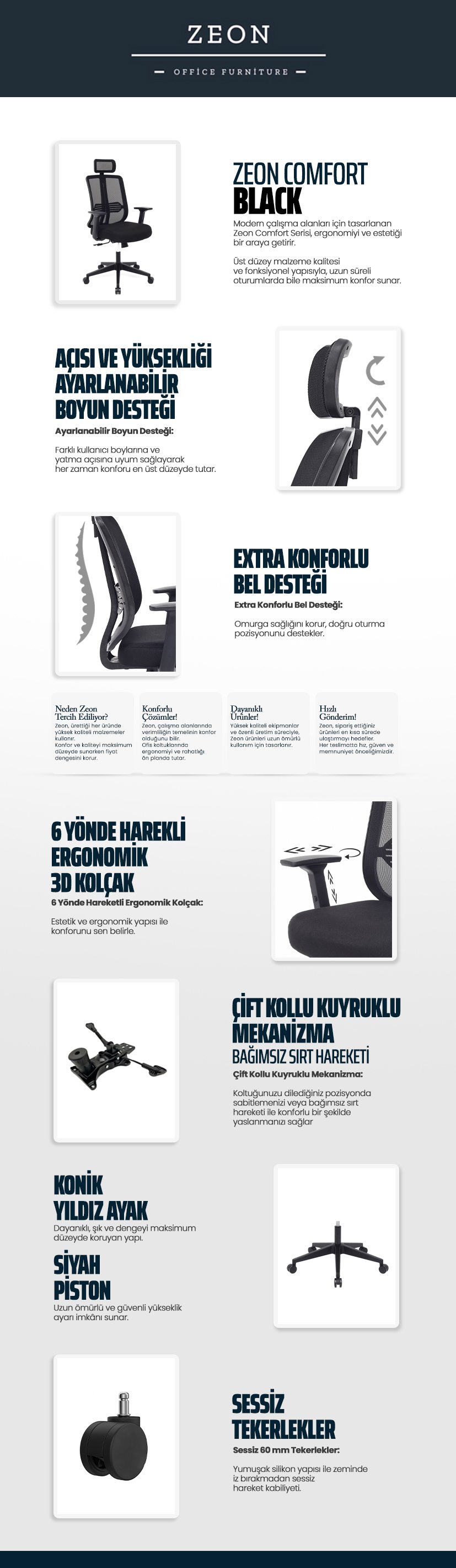 Zeon Büro Ofis Sistemleri // Comfort Black Ofis Koltuğu Makam Koltuğu Çalışma Koltuğu